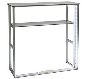 Set Up.pdf →Die Theke wird in einer Rolltasche geliefert. Leuchtrahmen zusammenstecken, Das Reflektortuch und das Dekobanner einspannen. Die Seitenteile einsetzen, Zwischenboden einlegen und Deckel drauf. Fertig ist die beleuchtete Theke.