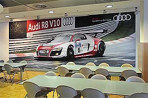 Textilbilder reflektieren keinen Schall und haben ein geringes Gewicht. Deshalb eignen sie sich besonders für laute Räume und große Formate. Die Textildrucke werden in den Rahmen eingespannt und sind einfach zu wechseln. Textframes können auch beidseitig bespannt und frei im Raum aufgestellt werden. Mit innenliegenden, schallschluckenden Elementen sind es ideale Trennwände. Es gibt aber auch steckbare Rahmenmodule mit integrierter LED-Beleuchtung, die einfach auf- und abzubauen sind. Damit bringen Sie ihre Botschaft zum Strahlen!